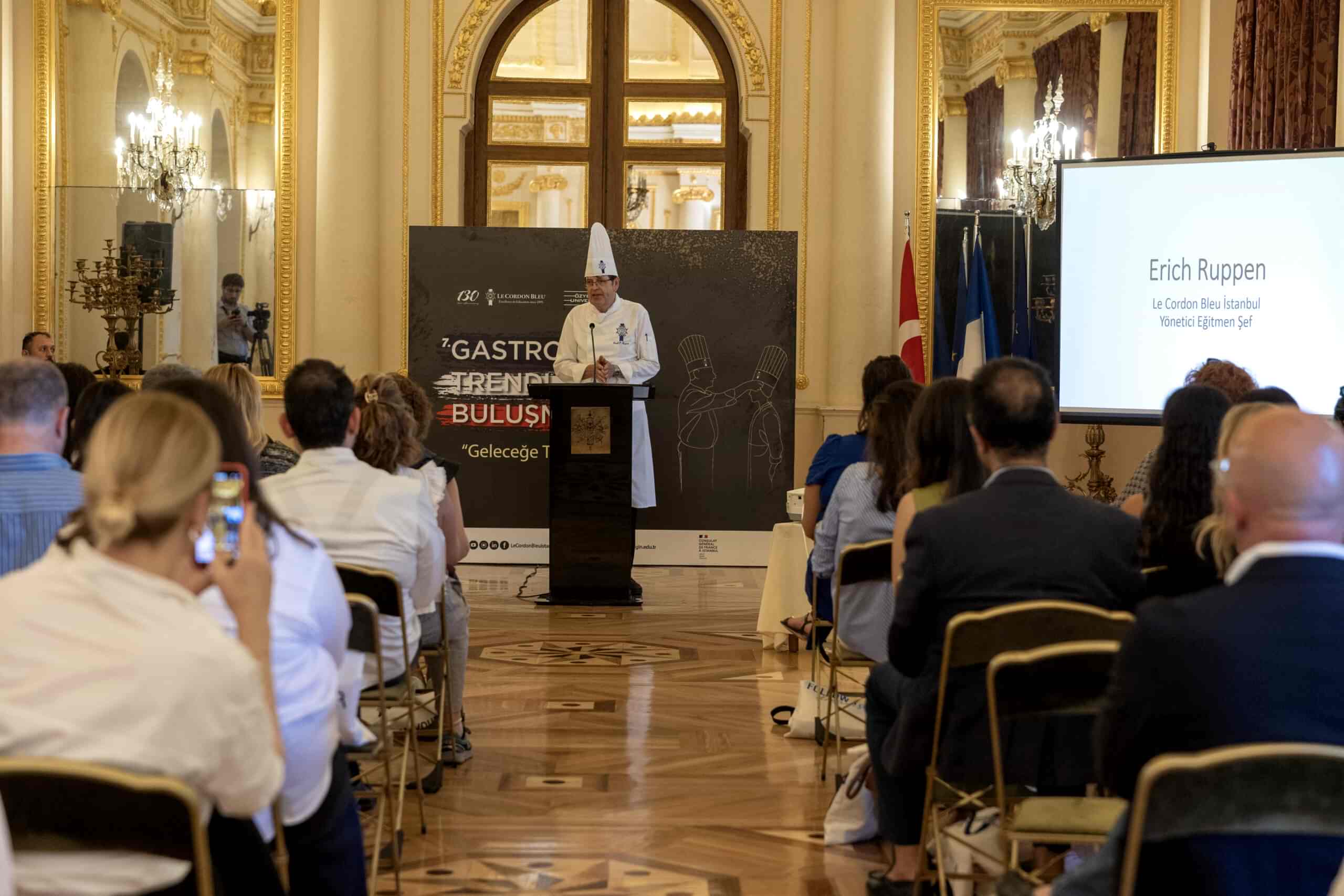 Fransız Sarayı’ndaki buluşmaya, Le Cordon Bleu’den mezun olan ünlü şefler, sektörün kanaat önderleri ve basın mensupları katıldı. Katılımcılar, bu yılın teması olan “Geleceğe Taşıyanlar” ışığında, 2025 Gastronomi Trendleri üzerine bilgi ve görüşlerini paylaştılar.